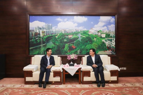 (谷倉新國貨研究院院長洪華與仙桃市委書記羅聯(lián)峰交流)