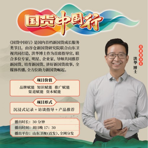 2022年,谷倉新國貨研究院啟動全新的新國貨培育戰(zhàn)略,以用戶為核心,通過爆品戰(zhàn)略、品牌戰(zhàn)略和流量戰(zhàn)略三大戰(zhàn)略推動新國貨崛起。除此之外,谷倉新國貨研究院聯(lián)合山東衛(wèi)視重磅打造中國首檔新國貨成長服務(wù)類節(jié)目《國貨中國行》,洪華博士作為首席指導(dǎo)官,聯(lián)合多位專家、明星、企業(yè)家、導(dǎo)師共同推薦新國貨、培育新國貨、講好新國貨故事,全媒體傳播,全方位助力新國貨崛起。