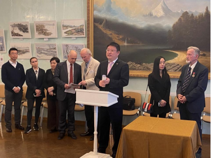 中俄人文合作發(fā)展中心理事長(zhǎng)尹斌先生在發(fā)言中談到:“藝術(shù)家劉子輿先生在莫斯科生活多年,在此期間,他給很多俄羅斯人傳授中國(guó)的水墨,為發(fā)揚(yáng)中國(guó)文化作出了巨大貢獻(xiàn)?!?/p>