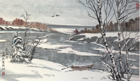 劉子輿作品《雪后》30x50cm,2022年(文華閣書(shū)畫(huà)院供圖)