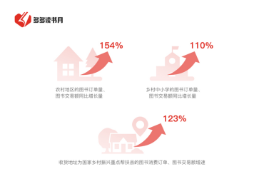 自2014年起,“全民閱讀”連續(xù)9次被寫入政府工作報告。據(jù)拼多多此前發(fā)布的《2021多多閱讀報告》調(diào)查數(shù)據(jù),在第一、第二季“多多讀書月”活動期間,來自農(nóng)村地區(qū)的圖書訂單量、圖書交易額同比增長超過154%,來自鄉(xiāng)村中小學(xué)的圖書訂單量、圖書交易額同比增長超過110%。