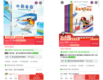 據(jù)了解,自4月20日第三季“多多讀書月”啟動以來,科普百科、藝術(shù)繪本、兒童文學(xué)等多種類型的童書是最受歡迎的拼單商品之一,包括DK兒童百科全書系列、世界兒童文學(xué)名著繪本、迪士尼雙語閱讀讀本、《笑貓日記》系列等熱門童書被“寶媽”們在多個社交平臺中分享。