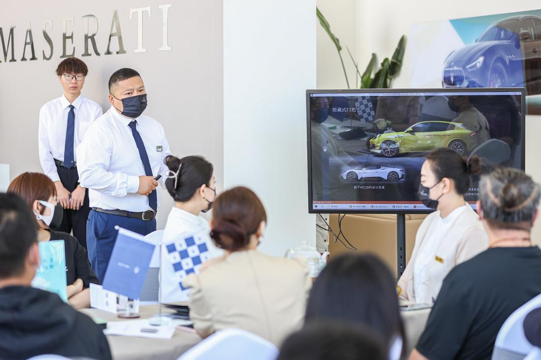 活動(dòng)開(kāi)場(chǎng),瑪莎拉蒂銷售內(nèi)訓(xùn)師帶領(lǐng)大家品鑒瑪莎拉蒂新款車型,體驗(yàn)手工工藝精心雕琢帶來(lái)的至臻享受。在傳奇三叉戟之中,駕馭激情與風(fēng)范。