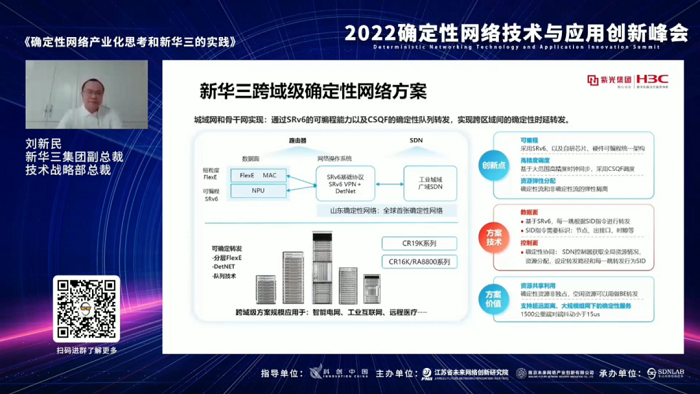 近日,由江蘇省未來網(wǎng)絡(luò)創(chuàng)新研究院、南京未來網(wǎng)絡(luò)產(chǎn)業(yè)創(chuàng)新有限公司主辦,SDNLAB承辦的“2022確定性網(wǎng)絡(luò)技術(shù)與應(yīng)用創(chuàng)新峰會”召開,紫光股份旗下新華三集團應(yīng)邀參會并分享了確定性網(wǎng)絡(luò)的產(chǎn)業(yè)化思考以及新華三應(yīng)用實踐,展現(xiàn)了新華三未來網(wǎng)絡(luò)演進與應(yīng)用上的創(chuàng)新實力和最新進展。
