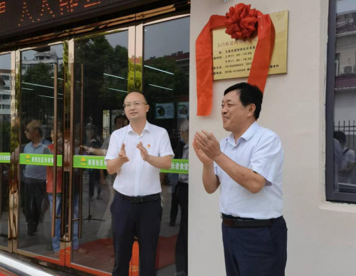 安徽省民政廳二級巡視員胡前義,桐城市委常委、組織部部長、統(tǒng)戰(zhàn)部部長、市政協(xié)黨組副書記儲江,中華志愿者協(xié)會關愛母嬰健康行動辦公室主任、中華志愿者雜志社安徽省聯(lián)絡處主任項五九,安慶市民政局四級調(diào)研員路興華,桐城市民政局局長高光柏,桐城市文昌街道黨工委書記疏波、文昌街道黨工委副書記、辦事處主任王延慶等領導參加揭牌儀式,胡前義、儲江為“長者食堂”揭牌。