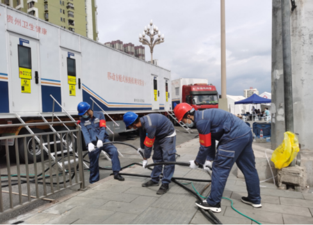 貴州電網(wǎng)于9月3日接到任務(wù)之時,用30分鐘組建青年突擊隊,10小時完成6臺綜合配電箱及360米低壓電纜接入,為11臺移動方艙式核酸檢測實驗室用電提供“雙保險”;戰(zhàn)役打響后,多支青年突擊隊對將軍山醫(yī)院等32個疫情防控醫(yī)療機(jī)構(gòu)及筑城廣場、金陽奧林匹克體育中心、花溪大學(xué)城等48個核酸樣本集中檢測方艙實現(xiàn)拉線送電和全日現(xiàn)場值守。
