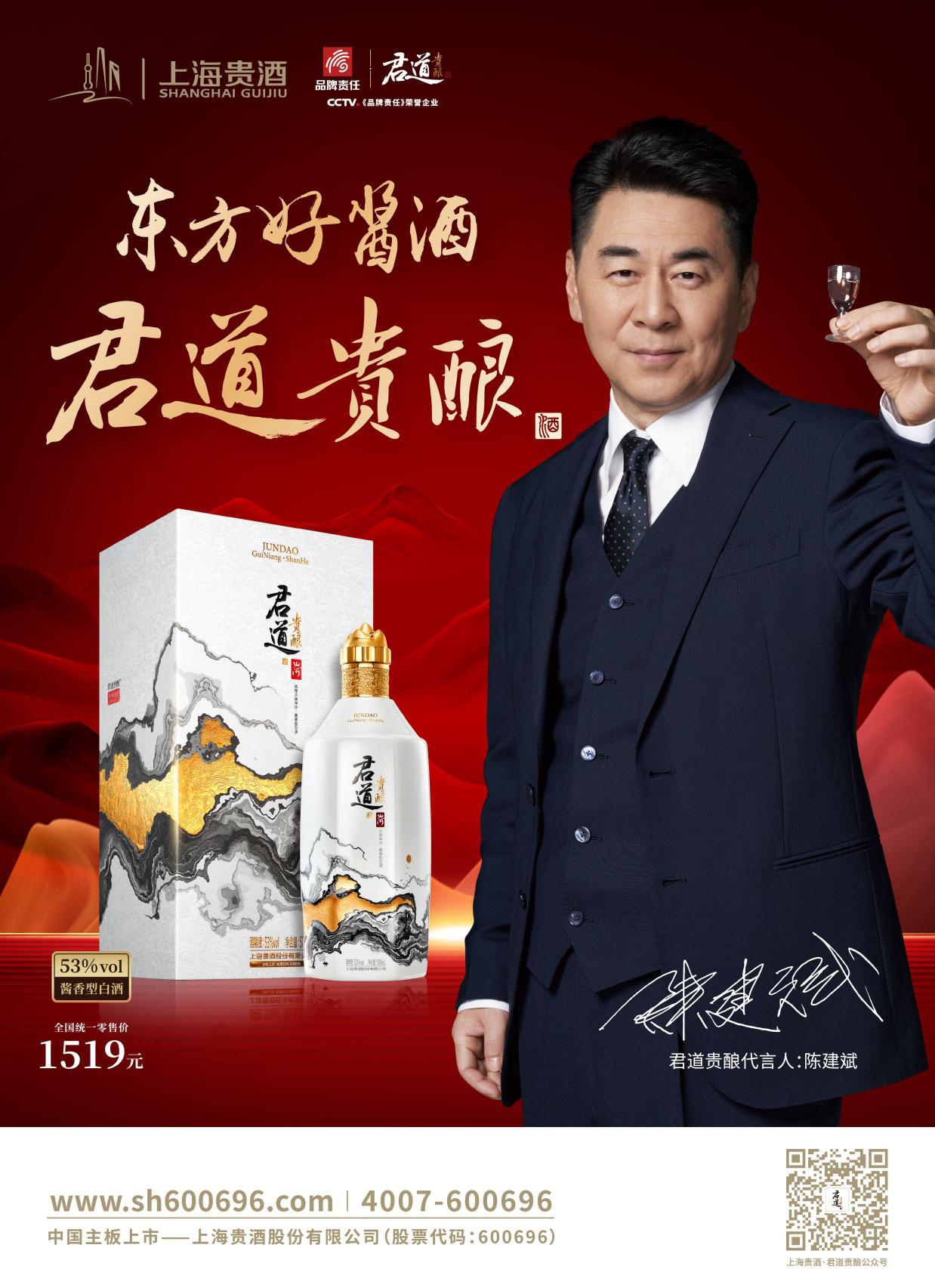 好演員,演繹歲月沉淀;好醬酒,淬煉時(shí)光韻味。上海貴酒·君道貴釀與陳建斌先生的攜手,是實(shí)力與實(shí)力的對(duì)話,也是口碑與口碑的加乘。此次攜手陳建斌,希望通過(guò)雙方的努力能為廣大用戶和粉絲帶來(lái)更加優(yōu)質(zhì)和產(chǎn)品和服務(wù)。上海貴酒·君道貴釀所蘊(yùn)含的君子文化,與陳建斌先生多年來(lái)保持的良好口碑,在文化影視界的專業(yè)信譽(yù)度不謀而合。