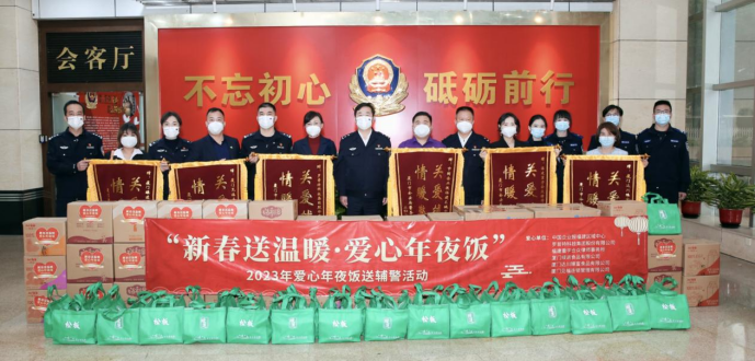 由中國企業(yè)報福建公司發(fā)起的“2023愛心年夜飯送輔警活動”第三個中國人民警察節(jié)當天在廈門市公安局大院隆重舉行,來自羅普特科技集團股份有限公司、福建重宇合眾律師事務(wù)所、廈門綠進食品有限公司、廈門達川臻富食品有限公司、廈門見福連鎖管理有限公司等愛心企業(yè)為廈門輔警支隊一線輔警送來了節(jié)日的問候和預制菜、油、果汁等愛心年夜飯“大禮包”,以及口罩等防疫物資,向奮斗在在一線守護廈門城市平安的執(zhí)勤輔警表示感激和敬意。