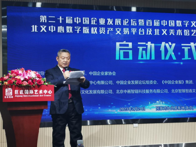 2023年2月24日,第二十屆中國企業(yè)發(fā)展論壇暨首屆中國數(shù)字文化產(chǎn)業(yè)投資高峰論壇啟動儀式在國家對外文化貿(mào)易基地(北京)舉行。與此同時,北文美術(shù)館藝術(shù)品交易服務(wù)平臺、北文中心數(shù)字版權(quán)資產(chǎn)發(fā)行平臺啟動儀式也如期舉辦。