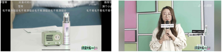 經(jīng)過前期的聲量積累,倩碧在直播環(huán)節(jié)中更為聚焦于將創(chuàng)新綜藝形式與品牌宣傳結(jié)合,通過片頭片尾廣告片、桌面產(chǎn)品擺放、嘉賓創(chuàng)意口播等形式植入品牌和產(chǎn)品形象。