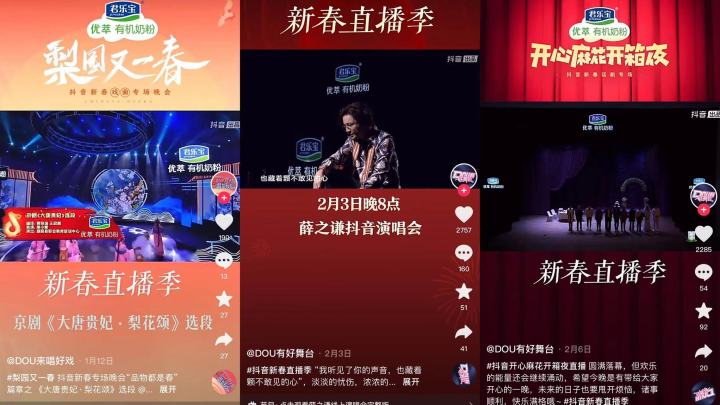 同樣是在今年CNY活動期間,優(yōu)萃有機奶粉合作了《梨園又一春》、《薛之謙演唱會》、《開心麻花開箱夜》等自帶關(guān)注度、話題性和高熱曝光的直播項目,這其中涵蓋戲曲、音樂、小品等多類型,滿足了不同圈層受眾的內(nèi)容需求。無論是別致氣韻的戲曲盛宴、讓人捧腹的喜劇專場還是高品質(zhì)音樂沉浸表演,都將春節(jié)氛圍拉至高潮,而借勢節(jié)目本身的影響力和傳播力,優(yōu)萃有機奶粉在收獲不俗流量的同時,再一次將“讓小寶寶先吃上有機食品”的品牌信息進行了生動植入。