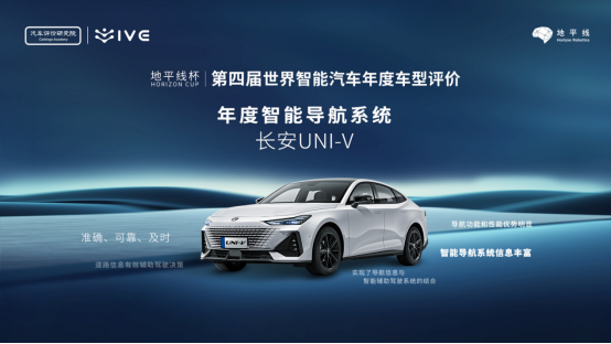 長安UNI-V榮獲“地平線杯”第四屆世界智能汽車年度智能導(dǎo)航系統(tǒng)榮譽(yù)稱號。
