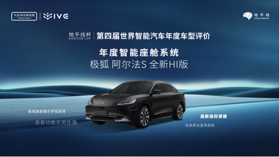 極狐阿爾法S全新HI版榮獲“地平線杯”第四屆世界智能汽車年度智能座艙系統(tǒng)榮譽(yù)稱號。