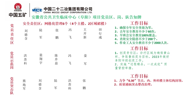 在安徽公共衛(wèi)生臨床中心(阜陽)項目,黨支部充分發(fā)揮黨組織的思想政治工作優(yōu)勢,堅持把宣傳教育作為安全生產(chǎn)的第一道工序,對所有新進場工人統(tǒng)一組織、認真開展安全主題教育;其次,通過觀看項目部自制安全生產(chǎn)警示片,并經(jīng)過微信公眾號、宣傳條幅、宣傳展板、《安全常識教育宣傳口袋書》等加強宣傳動員,項目LED視頻區(qū)循環(huán)播放安全教育視頻,營造濃郁的安全氛圍,強化全員的安全思想意識;此外,為把安全生產(chǎn)和黨建工作緊密結合,項目黨支部還組織黨員干部深入基層班組進行安全宣講活動,利用班前安全會將安全管理無死角覆蓋。