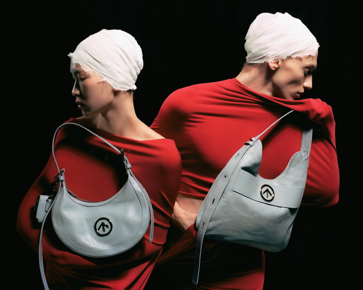 在包型的選擇上,GROTTO個樂以實用性較強(qiáng)的單肩包袋為主——腋下包的新月包型以及垂感較強(qiáng)的托特包型。新月包的圓形弧度是溫柔如月的象征,而霧藍(lán)的朦朧則表達(dá)了春夏月色的清澈與流動感。在曲線的線條中,流淌自由的夢。