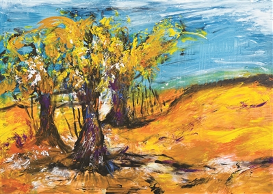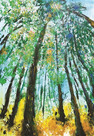 吳冠中老先生曾說,中國畫不能“近親結(jié)婚”。因為我們的視野狹窄。藝術(shù)是相通的,不分東方和西方。因此,劉家男不斷吸收東西方精華,并運用于作品之中。她的作品既能呈現(xiàn)出西方作品的色彩美感,同時又兼具中國潑墨的畫面呈現(xiàn)。無論是胡楊林系列,還是天端系列、鯨落系列以及自然系列,其作品的整體色彩都是非常大膽的,給人以強烈的視覺沖擊。劉家男認為,這是一個藝術(shù)家應(yīng)有的標志性符號。