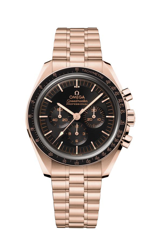 歐米茄研發(fā)的Sedna 18K金由金、銅和鈀三種金屬熔合而成,名字源于太陽系中表面顏色最紅的Sedna小行星,銅的巧妙比例讓Sedna金色澤更柔和雅致,稀有金屬鈀則讓微紅的色澤更加穩(wěn)定,歲月更迭間盡顯華貴雅致風范。