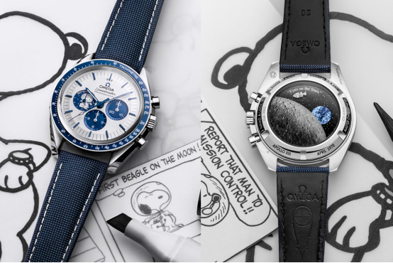 比如近兩年大家熟知的“史努比”表款,為紀念歐米茄獲得“史努比獎”而作,便屬于超霸家族里的周年腕表,2020年推出的50周年紀念款,表背有坐飛船環(huán)繞航行的史努比,非??蓯?。