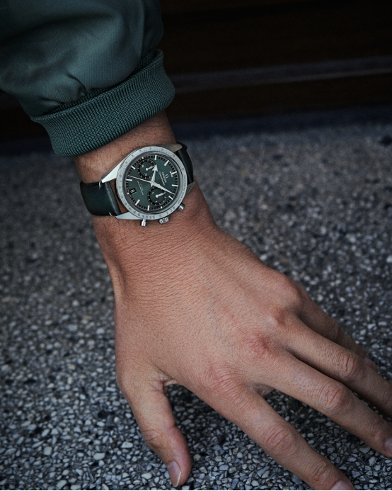 歐米茄超霸’57腕表搭配綠色表盤,拍攝?Chienyun