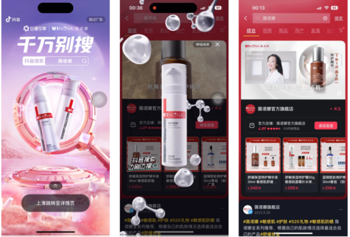銷售轉(zhuǎn)化始終是品牌的終極目標(biāo),品牌通過(guò)電商品專與熱榜、開(kāi)屏等聯(lián)動(dòng),在直播或非直播兩種場(chǎng)景下,可以實(shí)現(xiàn)品牌信息的多維展示,以及直播間的短鏈引流,促成更快速、直接的轉(zhuǎn)化。