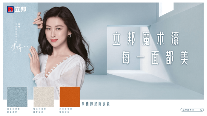朱珠擔(dān)任立邦墻面美學(xué)大使,并發(fā)布立邦魔術(shù)漆三款限定色
