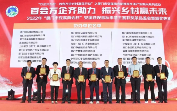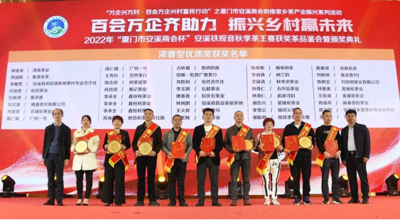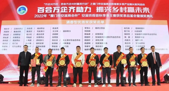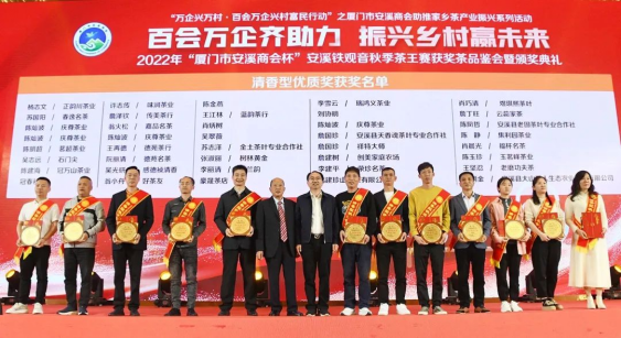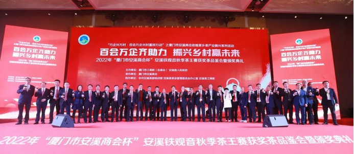2月24日,由廈門市工商聯(lián)(總商會(huì))、安溪縣人民政府主辦,廈門市安溪商會(huì)承辦,中共安溪縣委統(tǒng)戰(zhàn)部、安溪縣茶業(yè)管理委員會(huì)辦公室、安溪縣工商聯(lián)協(xié)辦的2022年“廈門市安溪商會(huì)杯”安溪鐵觀音秋季茶王賽獲獎(jiǎng)茶品鑒會(huì)暨頒獎(jiǎng)典禮在廈門佰翔五通酒店盛大舉行。本次活動(dòng)是為了進(jìn)一步落實(shí)廈門市工商聯(lián)和安溪縣人民政府提出的“萬企興萬村·百會(huì)萬企興村富民行動(dòng)”計(jì)劃——廈門市安溪商會(huì)助推家鄉(xiāng)茶產(chǎn)業(yè)振興活動(dòng),也是“廈門企業(yè)家日”配套活動(dòng)之一。