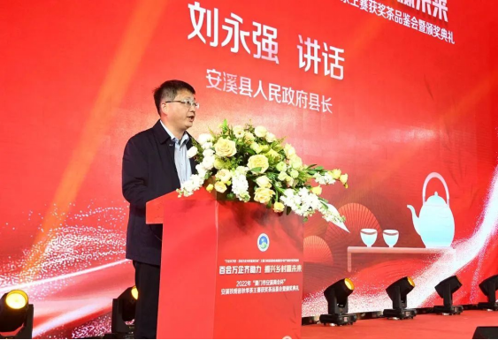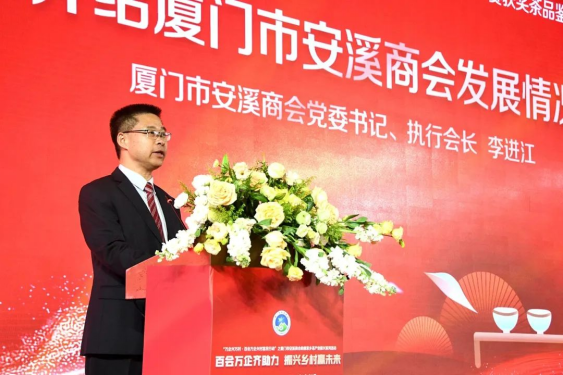 安溪縣縣長(zhǎng)劉永強(qiáng)在講話中表示,20多年來,廈門市安溪商會(huì)團(tuán)結(jié)帶領(lǐng)在廈鄉(xiāng)親弘揚(yáng)愛拼敢贏、靠自己的骨頭長(zhǎng)肉的精神,拼搏商海,盡顯風(fēng)采,在廈門特區(qū)留下了耀眼的茶鄉(xiāng)印記。難能可貴的是商會(huì)多年來傾心傾力,支持推動(dòng)家鄉(xiāng)茶產(chǎn)業(yè)發(fā)展,舉辦“廈門市安溪商會(huì)杯”茶王賽已成為規(guī)格最高的安溪鐵觀音茶葉賽事之一,激勵(lì)廣大茶農(nóng)茶人傳承匠心、用心制茶,提升安溪鐵觀音的美譽(yù)度和影響力。安溪是世界名茶鐵觀音發(fā)源地,中國(guó)烏龍茶之鄉(xiāng),近年來,安溪縣委縣政府緊扣三茶統(tǒng)籌,全面推進(jìn)茶產(chǎn)業(yè)高質(zhì)量發(fā)展。得益于茶產(chǎn)業(yè)的蓬勃發(fā)展,安溪走上了高質(zhì)量發(fā)展快車道,縣域綜合實(shí)力躍升至全國(guó)百?gòu)?qiáng)縣第53位,投資潛力第11位,已成為高新技術(shù)產(chǎn)業(yè)高地、宜居宜業(yè)的發(fā)展福地。今年,安溪縣委縣政府錨定GDP突破千億,緊扣6個(gè)工作抓手,奮力實(shí)施七大行動(dòng),加快全面建設(shè)具有茶鄉(xiāng)特色的現(xiàn)代化中等城市。真誠(chéng)期待廈門市安溪商會(huì)和廣大鄉(xiāng)賢以各種方式參與其中,同時(shí)竭誠(chéng)歡迎各界朋友到安溪品茗觀光、投資興業(yè)、共贏未來。