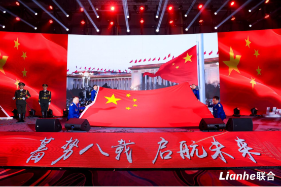 盛典當(dāng)中舉行了授旗和升國旗儀式,曾于2023年3月4日在天安門廣場上空飄揚(yáng)過的國旗、于2023年3月4日在天安門廣場上揮舞過的“天下第一刀”,帶著國家榮譽(yù)在聯(lián)合企業(yè)集團(tuán)八周年慶典上繼續(xù)履行了它們的使命。整場儀式莊嚴(yán)肅穆,現(xiàn)場嘉賓面向鮮紅的國旗一同唱響國歌。激昂嘹亮的國歌,激蕩拳拳報(bào)國之心,聯(lián)合企業(yè)集團(tuán)也將用更堅(jiān)實(shí)堅(jiān)定的步履、更振奮人心的號召,升華“企業(yè)家精神”,汲取前行的力量,融入經(jīng)濟(jì)社會發(fā)展大局,使其成為奮進(jìn)新征程的時代號角。