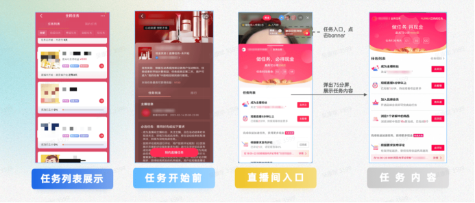 在直播間新品上市場(chǎng)景中,“看播任務(wù)”能夠充分調(diào)動(dòng)UGC互動(dòng),提升直播間熱度和生意,是品牌直播“利器”。品牌可以運(yùn)用看播任務(wù),以完成任務(wù)獲得現(xiàn)金獎(jiǎng)勵(lì)的方式,激勵(lì)用戶主動(dòng)停留在直播間內(nèi)進(jìn)行關(guān)注、評(píng)論、入會(huì)、瀏覽商品等行為,促進(jìn)直播間各項(xiàng)互動(dòng)指標(biāo)優(yōu)化,助力直播間新品上市聲勢(shì)和交易轉(zhuǎn)化。