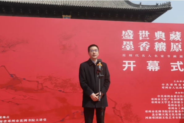 為全面學(xué)習(xí)貫徹黨的二十大精神,弘揚傳承中華優(yōu)秀傳統(tǒng)文化,進一步繁榮鄧州文藝事業(yè),以優(yōu)秀的作品豐富群眾文化生活,3月30日,“盛世典藏墨香穰原”中國近現(xiàn)代名人名家書畫展在河南省鄧州市花洲書院開幕。來自北京藝術(shù)界代表,南陽市文聯(lián)、美協(xié)、書協(xié)代表,鄧州市相關(guān)文化部門負(fù)責(zé)人及鄧州市廣大書畫愛好者參加了開幕式。