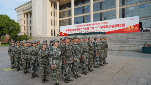 軍旗飄揚,軍號嘹亮。為慶祝中國人民解放軍建軍96周年,8月1日下午,揚子江藥業(yè)集團第二十七屆“八一”軍事隊列會操比賽在泰州總部舉行。泰州市委常委、軍分區(qū)司令員廖鵬,市退役軍人事務局局長張兆洋,高港區(qū)人武部部長朱平平出席活動,揚子江藥業(yè)集團黨委書記、董事長、總經理徐浩宇現場觀摩會操比賽并講話。