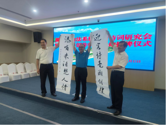 “迎客詩毫湘俗禮,添嘀米酒楚人情”。詩詞分會主席陳嶺為嘀嘀酒店盛情賦詩一首,并由研究會副會長劉慶富和書法分會副主席吳若順寫成書法作品,現(xiàn)場贈送給嘀嘀酒店,將活動氣氛推向高潮。