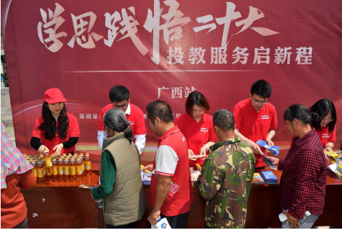 4月25日-26日,深交所聯(lián)合海通證券、廣西證券期貨基金業(yè)協(xié)會、證券時報舉辦的“學(xué)思踐悟二十大 投教服務(wù)啟新程”投資者服務(wù)專項(xiàng)活動走進(jìn)廣西欽州市浦北縣。在深入開展學(xué)習(xí)新時代中國特色社會主義思想主題教育之際,以多載體、多角度、多形式走進(jìn)鄉(xiāng)村小學(xué)、村間打谷場、田間地頭、紅色教育基地,以群眾喜聞樂見的方式展開面對面宣傳交流,推動投資者教育服務(wù)進(jìn)一步走進(jìn)鄉(xiāng)村基層,助力鄉(xiāng)村振興。