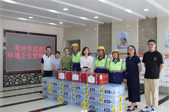 全億健康常州分部總經(jīng)理張?jiān)葡蛐燎诠ぷ鞯沫h(huán)衛(wèi)工們送上誠摯的問候,再三叮囑夏季高溫天氣,大家要時刻注意身體狀況,做好防暑降溫和防疫工作,感謝他們用勤勞的雙手為我們營造了整潔、舒適的環(huán)境。