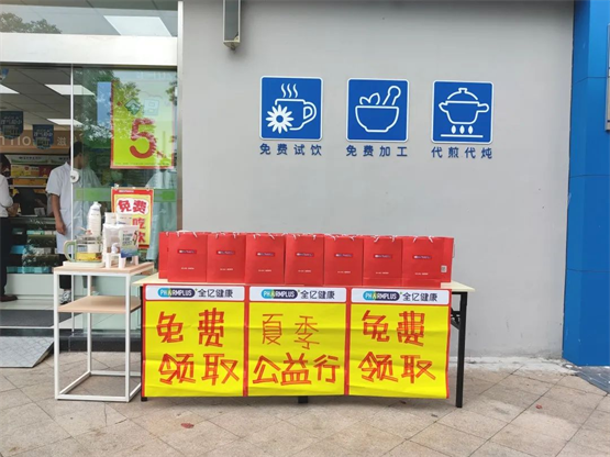 為應(yīng)對高溫天氣,淮安廣濟(jì)醫(yī)藥連鎖10家藥店,設(shè)置了“愛心冰箱”,給戶外勞動者提供免費(fèi)飲用水和藿香正氣液等解暑物資。