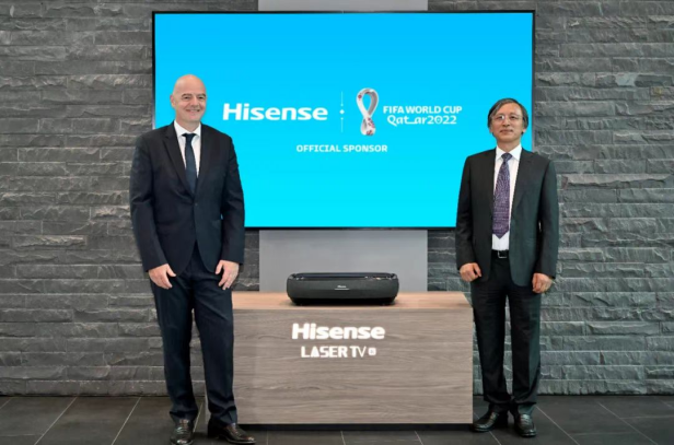 大家看到的這張照片,是海信新任董事長林瀾博士與國際足聯(lián)主席因凡蒂諾先生,一起見證海信激光電視入駐位于瑞士蘇黎世的國際足聯(lián)博物館。海信作為官方贊助商的卡塔爾世界杯即將在兩個月之后打響。了解海信的人都知道,這已經(jīng)是海信自2016年之后連續(xù)第四次贊助世界頂級體育賽事,這在中國企業(yè)中絕無僅有。可以說,海信目前是中國企業(yè)在品牌國際化上步子最大、投入最多的企業(yè)之一。體育是世界通行的語言和溝通方式,也是企業(yè)建立國際化品牌最直接且高效的方式。體育營銷不僅幫助海信初步完成了全球知名度的塑造,也不斷支撐著海信品牌在全球邁向一流。7月27日,谷歌攜手凱度發(fā)布了《中國全球化品牌50強》榜單,來自美英法澳日等11個國家的117萬名消費者投票結(jié)果顯示,海信連續(xù)6年位居中國全球化品牌10強,并蟬聯(lián)中國家電企業(yè)出海第一品牌。