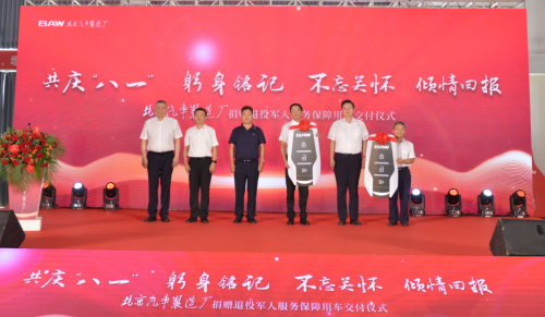 7月28日,北京汽車制造廠在青島總部基地隆重舉行“共慶‘八一’,躬身銘記,不忘關(guān)懷,傾情回報”捐贈退伍軍人服務(wù)保障用車交付儀式,以實際行動做出擁軍表率,為建軍96周年獻(xiàn)禮。原空軍指揮學(xué)院副院長朱和平少將、中國退役軍人就業(yè)創(chuàng)業(yè)服務(wù)促進(jìn)會理事長王義少將、中國退役軍人就業(yè)創(chuàng)業(yè)服務(wù)促進(jìn)會常務(wù)副理事長林崗少將、中國汽車工業(yè)協(xié)會常務(wù)副會長兼秘書長付炳鋒、山東省退役軍人事務(wù)廳副廳長劉興磊以及各界領(lǐng)導(dǎo)嘉賓共計200余人出席了本次儀式,北京汽車制造廠董事長陸付軍在現(xiàn)場遞交了此次捐贈的BAW卡路里皮卡新車鑰匙。