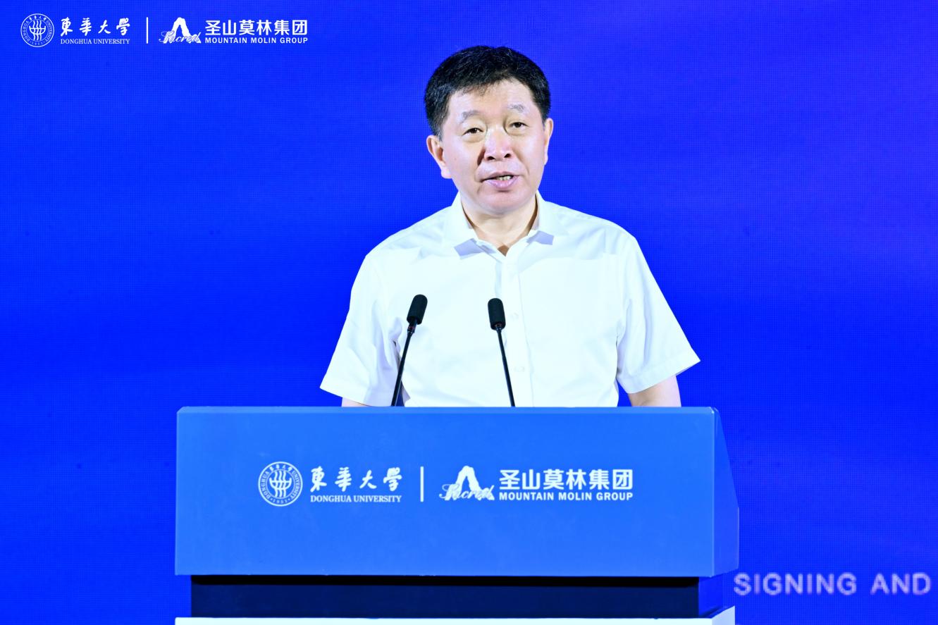 中國工程院院士、東華大學(xué)校長俞建勇出席儀式并致辭,他表示,東華大學(xué)是新中國成立的第一所紡織高等學(xué)府,也是教育部直屬、國家“211 工程”、國家“雙一流”建設(shè)高校。五糧液集團是“全球規(guī)模最大、生態(tài)環(huán)境最佳”和“最有價值品牌”特大型現(xiàn)代企業(yè),圣山莫林集團作為五糧液集團多元板塊子集團,深耕紡織服裝行業(yè),積極服務(wù)地方經(jīng)濟發(fā)展。此次東華大學(xué)與圣山莫林集團合作設(shè)立聯(lián)合創(chuàng)新中心,是貫徹落實黨的二十大對教育、科技、人才工作統(tǒng)籌部署的重要舉措,是雙方深化科教融合、產(chǎn)教融合,搶抓機遇、共謀發(fā)展的新思路與新探索,是雙方“情相融”“力相聚”,互惠共贏、共謀發(fā)展的新起點。希望雙方以共建“東華大學(xué)-圣山莫林集團聯(lián)合創(chuàng)新中心”為契機,充分發(fā)揮東華大學(xué)在紡織、材料等前沿領(lǐng)域的研發(fā)和創(chuàng)新優(yōu)勢以及圣山莫林集團的市場和資金優(yōu)勢,在時尚設(shè)計、面料開發(fā)、服裝研發(fā)、成果轉(zhuǎn)化以及畢業(yè)生就業(yè)等方面開展更高層次的交流與合作,合力譜寫校企合作、產(chǎn)教融合的新篇章。